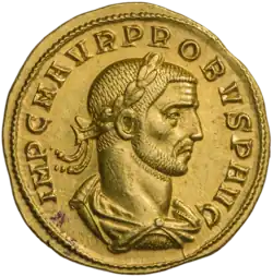 Проб происходил из Паннонии. Он служил в римской армии в правление Валериана, Галлиена, Клавдия II и Аврелиана. Будучи военачальником на Востоке, после смерти Тацита Проб был провозглашён императором солдатами. Родственник Тацита, Марк Анний Флориан, захвативший власть, вскоре был убит своими подчинёнными. После признания сенатом Проб взялся за оборону границ империи. В 277—278 годах были разгромлены франки, бургунды, алеманны, вандалы, вторгшиеся в Галлию и Иллирик. Был наведён порядок в восточных провинциях. Вслед за тем быстро были разбиты Юлий Сатурнин в Сирии и узурпаторы Прокул и Боноз в Галлии. Для заселения опустошённых пограничных провинций в 279 году Проб расселил в Мёзии и Фракии множество варваров. Кроме того, он отменил запрет на виноградарство вне пределов Италии. В 282 году император был убит в Сирмии во время солдатского мятежа.