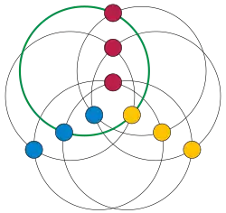 Для построения графа этого вида из свободного от арифметических прогрессий подмножества Беренда , нумеруем вершины в каждой доле от до и строим треугольники вида по модулю для каждого из интервала от до и каждое число принадлежит . Например, с и в результате получим сбалансированный трёхдольный граф с 9 вершинами и 18 рёбрами, показанный на рисунке. Граф, образованный путём объединения этих треугольников, имеет желаемое свойство, что каждое ребро принадлежит ровно одному треугольнику. Если бы это было не так, существовал бы треугольник , где , и принадлежат , что нарушает предположение об отсутствии арифметических прогрессий в [5].