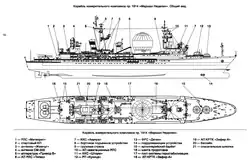 | Авиационная группа | 2 вертолёта Ка-25ТЛ в двух ангарах |