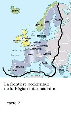Обширные территории, расположенные между Адриатическим морем и рекой Инд образуют Промежуточный регион, который выполняет роль своеобразного моста между Западной и Восточной цивилизациями. Это обширное пространство простирается от восточной половины Европы до западной половины Азии. Понятие «промежуточный регион» призвано показать, что в действительности не существует ни однородной Европы, ни однородной Азии. Термины «Европа» и «Азия» обозначают лишь географические регионы, а вовсе не цивилизации. В нём и в демографическом, и в религиозном плане преобладают такие ведущие религии, как православие, суннизм и шиизм, алавизм и иудаизм. В свою очередь, на Западе преобладают католицизм и протестантизм, а на Востоке — индуизм и буддизм.