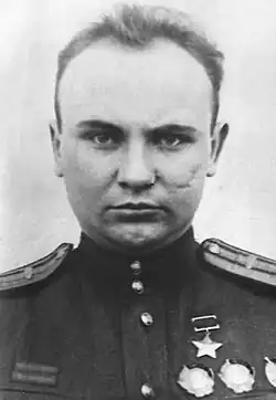 - ↑ На момент представления к присвоению звания Героя Советского Союза.