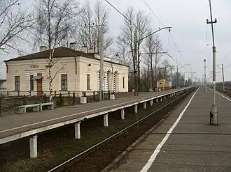 На станции 3 пути, одна боковая платформа, расположенная у здания вокзала, и одна островная. По путевому развитию и расположению вокзала аналогична станции Тайцы: на островной платформе производится посадка-высадка пассажиров только из электропоездов, прибывших на второй путь, а из электропоездов, прибывших на первый путь, посадка-высадка производится только на боковую платформу. Третий путь используется для отстоя грузовых вагонов. В южной горловине, кроме того, имеется ещё один тупиковый путь.