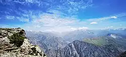 - Вид на горы Кызылнура и Карангур с плато