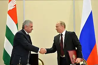 - ↑ Путин и Хаджимба решили обновить договор о дружбе и сотрудничестве. Дата обращения: 28 августа 2014. Архивировано 28 августа 2014 года.