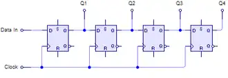 - ↑ http://www.bashedu.ru/perspage/wsap/posobie/chapter3/6.htm (недоступная+ссылка) Основы цифровой электроники. 3.6. Регистры. Регистры сдвига. Рис. 3.27. Регистры сдвига на D-триггерах а), RS-триггерах б) и комбинированный регистр на D-триггерах