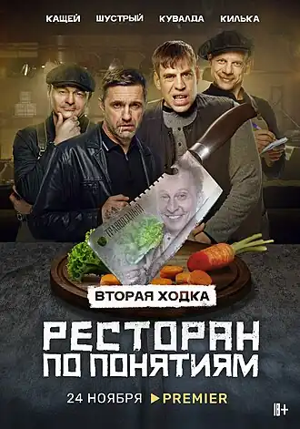 «Ресторан по понятиям» — российский комедийно-криминальный телесериал Давида Дадунашвили, который транслируют на видеосервисе Premier, с 21 февраля 2022 года — на телеканале ТНТ. Главные роли в нём сыграли Владимир Вдовиченков, Дмитрий Дюжев, Владимир Сычёв и Иван Кокорин. Премьерный показ первого сезона проходил с 20 января по 17 февраля 2022 года, второго — с 24 ноября по 13 декабря 2022 года[1]. 6 января 2023 года на ТНТ состоялась премьера спецсерии «Ресторан по понятиям: Бедный олигарх». 24 августа 2023 года сериал был продлён на третий сезон[2].