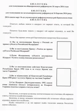 - ↑ Бюллетени всекрымского референдума напечатают на трех языках // Крымское информационное агентство. Дата обращения: 7 марта 2014. Архивировано 7 марта 2014 года.