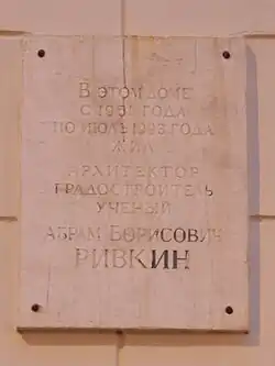 Абрам Бенцианович Ривкин (1914, Стародуб, Черниговская губерния — 1993, Челябинск) — советский архитектор. Организатор кафедры градостроительства инженерно-строительного факультета Челябинского политехнического института (ЧПИ). Член Союза архитекторов СССР (1946), ветеран ЧПИ (1984), избирался членом и председателем Челябинской организации Союза архитекторов СССР.