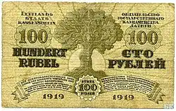 22 марта 1919 года прогерманским правительством Андриевса Ниедры были выпущены латвийские рубли, равные 100 латвийским копейкам[3]. Латвийский рубль равнялся полутора российским.