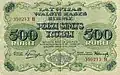 В фигурной рамке надпись на латышском языке: «Временный денежный знак банка Латвии». Под номиналом — факсимильные подписи президента и кассира Банка Латвии. |