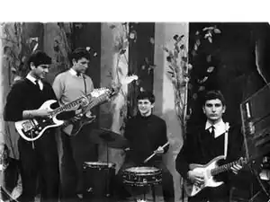 Первая «настоящая» советская рок-группа появилась, как считает критик Артемий Троицкий, в Риге в конце 1961 года. Коллектив назывался «Ревенджерс»[Прим. 11]. Музыканты играли на появившихся в продаже в 61-м году чешских электрогитарах, а бас-гитары делали самостоятельно, используя струны от рояля[Прим. 12]. В 1963 году появилась первая эстонская рок-группа «Юниоры»[64]. Первой московской рок-группой стали просуществовавшие недолгое время «Братья», второй — «Соколы» (они же первыми запели рок на русском языке), а третьей — конкурировавшие с ними «Славяне» Александра Градского. Однако слово «рок» ещё не имело хождения, а все коллективы носили название «биг-бит» или просто «бит». К 1966 году в больших городах существовали десятки «биг-битов». В это же время проходят первые фестивали: в Риге во Дворце спорта сыграли «Мелоди Мейкерз», «Атлатик», «Эолика». В Ленинграде первый концерт прошёл в двухместном кафе «Ровесник». Все эти концерты были нелегальными, но столкновения с властями не возникало. Шаг к официальной адаптации рока был сделан в 1966 году, когда появились группы (ВИА) «Поющие гитары» и «Веселые ребята». Однако они по мнению того же Троицкого представляли лишь «кастрированную» версию рока, поскольку их репертуар состоял из «рутинных поп-песенок». К 1968 году по всей стране возникли бит-клубы, хотя они практически сразу закрывались начальством. В Москве к тому времени существовало уже двести шестьдесят три рок-ансамбля[65][Прим. 13].