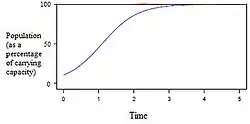 Большинство популяций не растёт экспоненциально, скорее они следуют логистической модели. Как только население достигнет своей предельной нагрузки, оно стабилизируется, и экспоненциальная кривая будет выравниваться в сторону ёмкости среды, что обычно происходит, когда население истощает большинство своих природных ресурсов.[17]