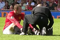 12 августа 2007 года, в первом же матче сезона 2007/08 против «Рединга», Руни получил перелом плюсневой кости стопы[107] (матч завершился без забитых голов со счётом 0:0[108]). Ожидалось, что Уэйн пропустит около двух месяцев. Но 26 августа Алекс Фергюсон заявил, что Руни может вернуться на поле уже через три недели[109].