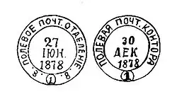 ![]() Почтовые штемпели российских военно-полевых отделения и конторы (1878) | |