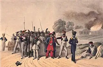 - ↑ Röder, 1848, , pp. 209—210.Оригинальный текст (нем.)«Daß die Ruſſen zu Repreſſalien dadurch berechtigt ſind und ſie ohne Zweifel an den Gefangenen, die ſie von uns machen»