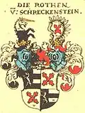 Рот фон Шрекенштайн | Roth von Schreckenstein | Семья также входила в состав рыцарских кантонов Крайхгау и Хегау-Альгой-Боденское озеро Швабского рыцарского круга. С 1684 года — обладатели титула фрайгерр. |
