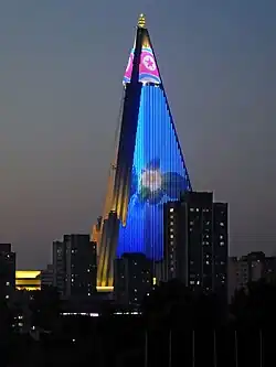 - ↑ O'Carroll, Chad (21 мая 2018). Enormous LED light wall added to side of Pyongyang's Ryugyong Hotel. NK News. Архивировано 9 мая 2020. Дата обращения: 28 мая 2023.