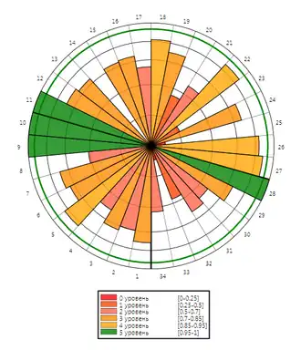 Результатом оценки является 8 оценок степени выполнения требований Стандарта по направлениям ИБ и итоговая оценка R. Значения всех групповых показателей ИБ и оценок по направлениям ИБ должны быть отображены на итоговой диаграмме соответствия (см. рисунок).