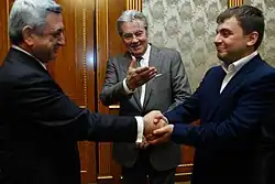 Президент Армении С. А. Саргсян, Ален Делон и Валерий Саарян. 18 декабря 2013 года. Ереван.