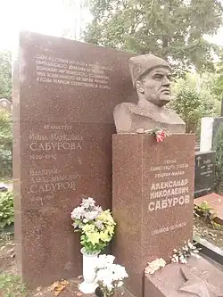А. Н. Сабуров умер 15 апреля 1974 года. Похоронен в Москве на Новодевичьем кладбище (участок № 4).