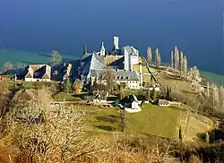 | Шильонский замок в Швейцарии | Одна из резиденций средневековых монархов в Турине | Ньонский замок на берегу Женевского озера |