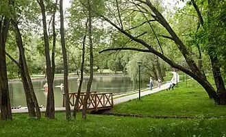 Покрытие пешеходных дорожек парка обновили: их замостили плиткой, а на экотропе протяжённостью 100 метров, ведущей через овраг, уложили новый деревянный настил. В природной зоне парка высадили более шести тысяч кустарников, разбили более 160 тысяч квадратных метров газонов и около 1800 квадратных метров цветников. Кроме того, был очищен Леоновский пруд, где дополнительно установили домики для водоплавающих птиц.