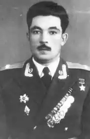 - ↑ В Указе о награждении званием Героя Советского Союза указан как Салихов Миохат Абдулович