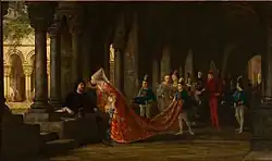| 670 | ![]() | Пьер-Шарль Конт «Alain Chartier et Marguerite d’Écosse» Холст, масло, 78 × 132 см |
