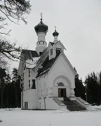 - деревянная, на гранитном цоколе, православная церковь (1892, архитектор Е. Л. Лебурде), освящённая во имя Святого Благоверного князя Александра Невского;