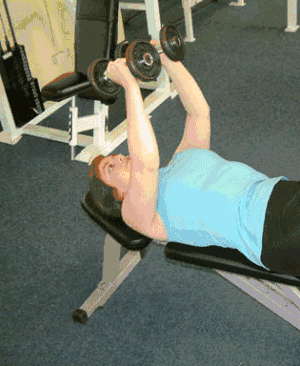 Данное упражнение позволяет производить растяжку больших грудных мышц, величина которой определяется насколько низко тренирующийся опускает гантели.