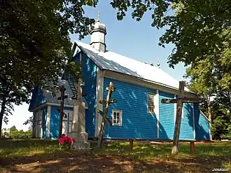 Памятник деревянного народного зодчества. Состоит из основного и алтарных срубов, прямоугольных в плане и накрытых общей крышей с треугольными навесами в месте соединения срубов. По удлинённой оси до алтарного сруба пристроена низкая ризница с односкатной крышей что придает композиции храма ступенчатый абрис. Стены облицованы горизонтальными панелями и завершены развитым профилированным карнизом.
