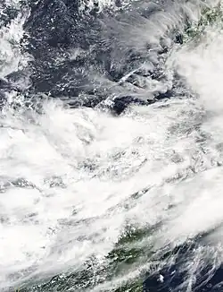 | Интенсивность | 55 км/ч (35 mph) (10-мин), 1002 гПа (мбар) | ||