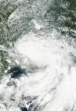 | Интенсивность | 55 км/ч (35 mph) (10-мин), 1006 гПа (мбар) | ||
