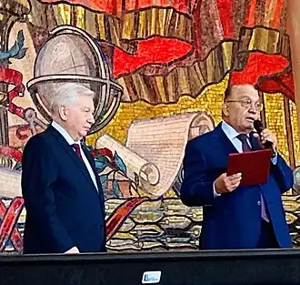 - ↑ Посол России вручил директору филиала МГУ в Казахстане нагрудный знак МИД РФ. Дата обращения: 17 ноября 2022. Архивировано 17 ноября 2022 года.