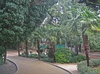 На ровных местах, включая главный проспект курорта и участки, примыкающие к нему, организован регулярный парк, в насаждения которого включены преимущественно экзоты. Парадной частью этого парка является главный проспект курорта, устроенный в виде длинного цветочного партера, размещенного по оси проспекта. Этот партер по сторонам обсажен кипарисом пирамидальным, а в центре обильно насыщен цветами. Партер в меру украшен копиями классических скульптур.