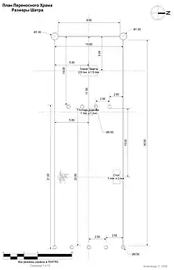 - ↑ По большинству мнений (Филон Александрийский, Иосиф Флавий, «Барайта де-мелехет а-Мишкан»). Длина шатра не совсем ясна, однако, в любом случае, она была не менее 9 локтей.