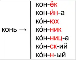 Словообразовательная парадигма, образованная от производящего (мотивирующего) слова конь[6]