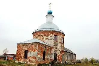 Кирпичное строение в стиле классицизм обладает своеобразной, редкой композицией. Купольная двусветная ротонда доминирует в объёме здания; помещения трапезной и алтаря — прямоугольные. В трапезной обустроен и освящён Воскресенский придел — в память о прежней деревянной Воскресенской церкви[3].