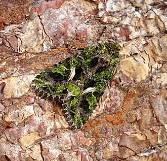 Размах крыльев 38—43 мм[2] (по другим данным — 32-52 мм[3]). Передние крылья широкие, буро-серые с зелёным узором; выделяются также более светлые поперечные линии, зелёное почковидное пятно и косой желтовато-белый штрих над ним. Задние крылья тёмно-серого цвета, с более светлой нижней стороной[2][3].