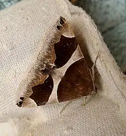 Размах крыльев 32—58 мм[4]. Вершина передних крыльев резко вытянута. Передние крылья тёмные, бурого цвета, с серой, суженной в середине поперечной перевязью и с широким,, несколько более тёмным внешним краем. наружная поперечная линия светлая, на вершине крыла имеется два чёрно-бурых пятна. Задние крылья бурые, с более светлой поперечной перевязью. Ноги покрыты пушистыми волосками. На средних голенях находятся шипы. Гусеница похожа на гусениц рода Catocala — серая с жёлтыми продольными линиями и мелкими чёрными точками. Куколка красно-бурого цвета[1].