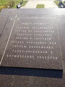 Среди образцов техники, созданной при участии ФЦДТ «Союз», была межконтинентальная баллистическая ракета «Тополь». Именно она составила основу, созданному в 2004 году, мемориалу. Транспортный контейнер ракеты был установлен вертикально вверх и закреплён на бетонной площадке. Позже, в сквере рядом с «Тополем», появилась и другая ракетная техника.