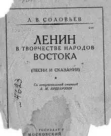 В 1930 году Л. В. Соловьёв издал книгу «Ленин в творчестве народов Востока» — сборник песен о В. И. Ленине, которые значились как переводы узбекских, таджикских и киргизских народных песен и сказаний. Как утверждают в своих воспоминаниях Е. С. Калмановский[4] и В. С. Виткович[5], эти песни сочинил сам Л. Соловьёв. Тем не менее экспедиция ташкентского Института языка и литературы в 1933 году подтвердила фольклорный источник песен, были представлены якобы оригинальные тексты нескольких песен на узбекском и таджикском[3][6].