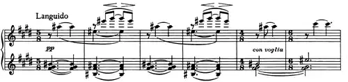 13-46 | Вторая тема вступления появляется в такте 13, она обозначена темповым указанием Languido. | |