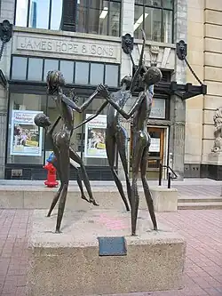 Также на улице расположены современные небоскрёбы, ряд скульптур и церквей.
