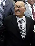 - ↑ После длительных акций протеста и тяжелого ранения 23 ноября 2011 передал подномочия президента вице-президенту Хади. В течение трех месяцев был почётным президентом Йемена.