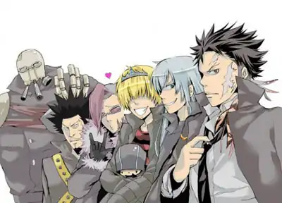 Члены Варии (справа налево): Занзас, Скуало, Бельфегор , Маммон (на руках), Луссурия, Леви-А-Тан, Гола Моска