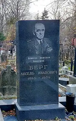 - Берг, Аксель Иванович (1893—1979) — учёный в области радиоэлектроники и кибернетики, академик АН СССР, адмирал-инженер; 3 уч. 17 ряд.