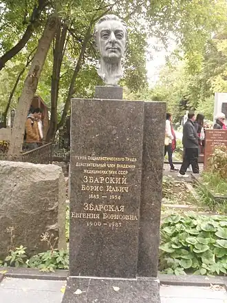 - Збарский, Борис Ильич (1885—1954) — биохимик, академик АМН СССР; 4 уч. 15 ряд