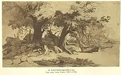 ![]() | Мальчик с собакой в лесу | Бумага, сепия | 23,1×18,3 | 1840 | [28] |