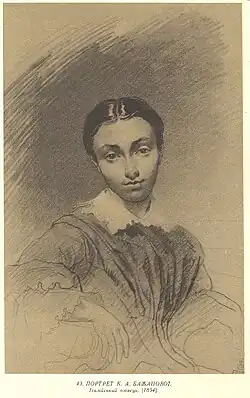 ![]() | Портрет Катерины Абазы (?) | Бристольский картон, акварель | 22,5×18,1 | 1837 | [11] |